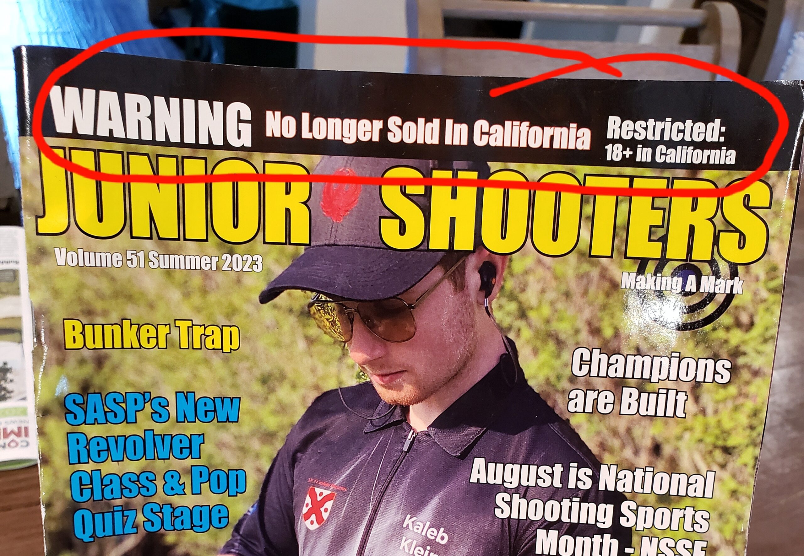 At any rate, despite the fact that federal law allows for the ownership and possession of long guns by minors and the possession of handguns by minors in certain circumstances (employment, ranching, farming, target practice, and hunting), the Golden State of Kommiefornia won’t even allow minors to possess a primarily educational magazine about the shooting sports.