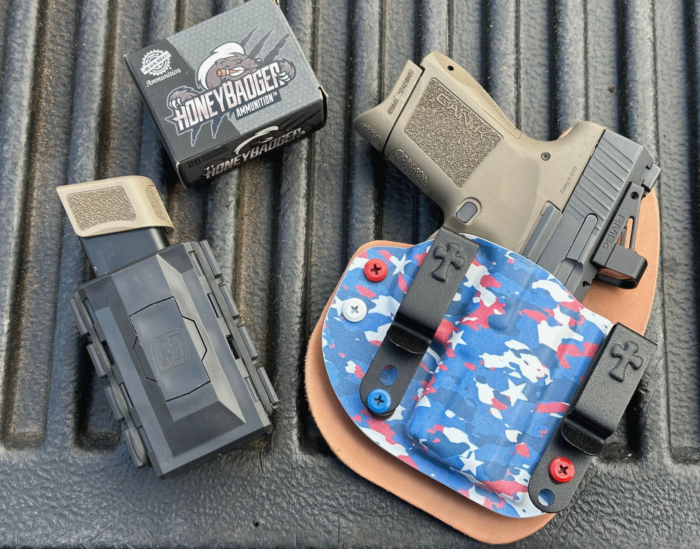 If you’re serious about wearing an IWB holster day in and day out, spend the extra money and get the horsehide from CrossBreed. I learned that lesson about 12 years ago and haven’t looked back. To carry my spare magazine, I ordered a Confidant single mag carrier from CrossBreed as well.