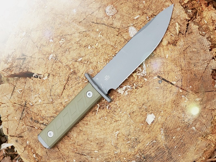 The textured G-10 handle is comfortably beveled, lacking coarse edges but providing enough grip even for a harsh stab (more on that later).