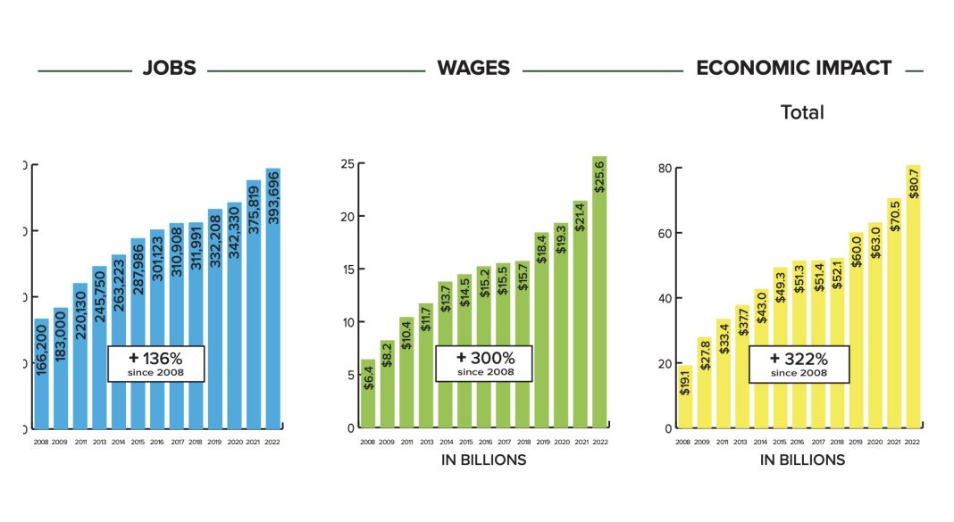 The total economic impact of the firearm and ammunition industry in the United States increased to $80.73 billion in 2022 from $19.1 billion in 2008, a 322 percent increase, while the total number of full-time equivalent jobs rose to over 393,696 from approximately 166,000, a 136 percent increase in that same period, according to a report released by the NSSF, The Firearm Industry Trade Association.