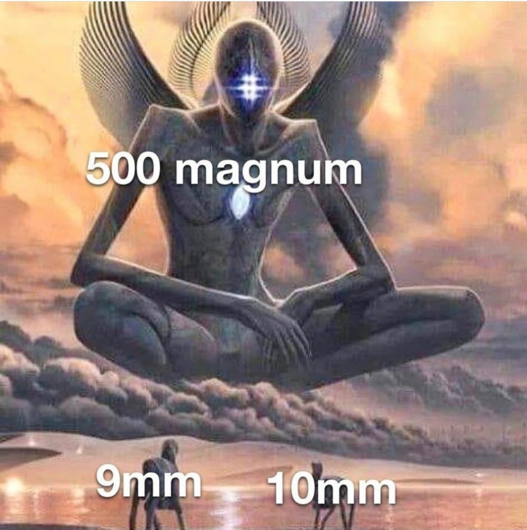 I mean, yeah, 500 Magnum is a heck of a thing! Sure ain’t easy to shoot fast, though. Meme from The Gun Collective.