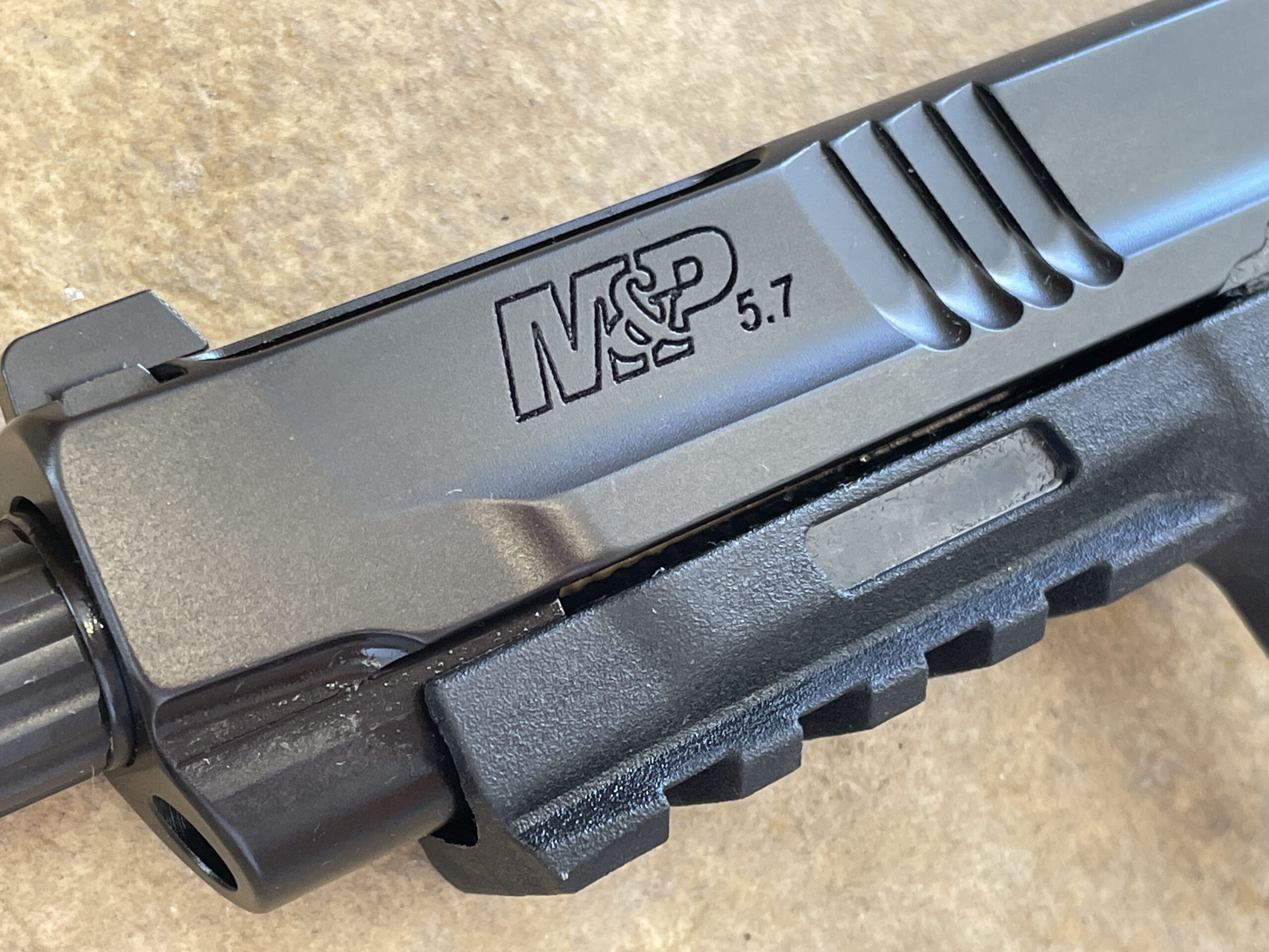 Note the design of the M&P 5.7 leaves a slight gap between the frame and the slide on the front third of the gun.