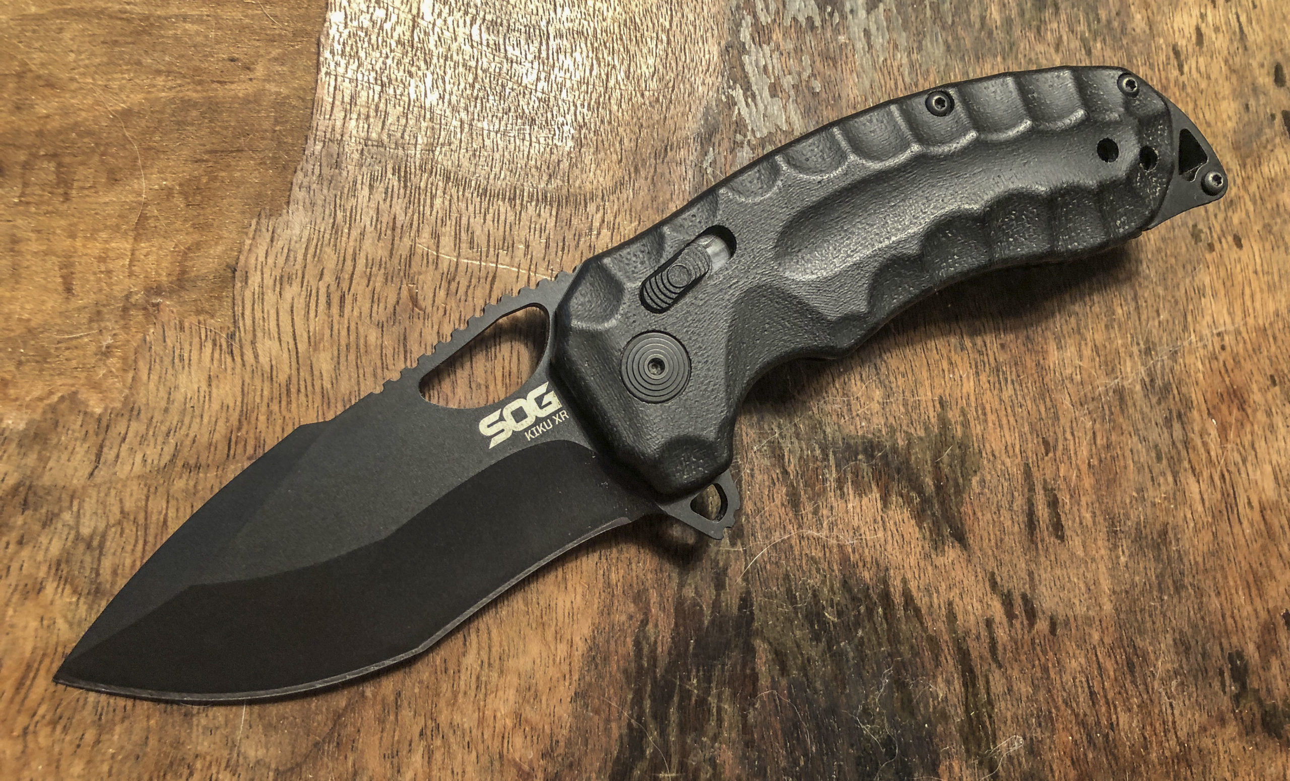 Despite myself, I really love this knife. The SOG Kiku XR flipper is a beefy, solid, substantial folding knife that’s beautifully sculpted to fill the hand.